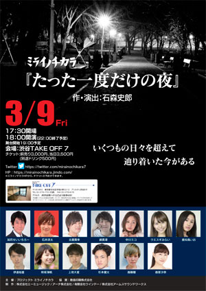 舞台:石森史郎脚本『たった一度だけの夜』(19:00予定)