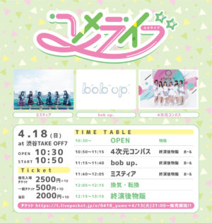 優先入場チケット¥2500 / 一般チケット¥500 / 当日¥2000(各別途1D)
