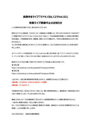 麻美ゆまライブ「マナツノヨルノユマVol.02」(配信ライブ)
