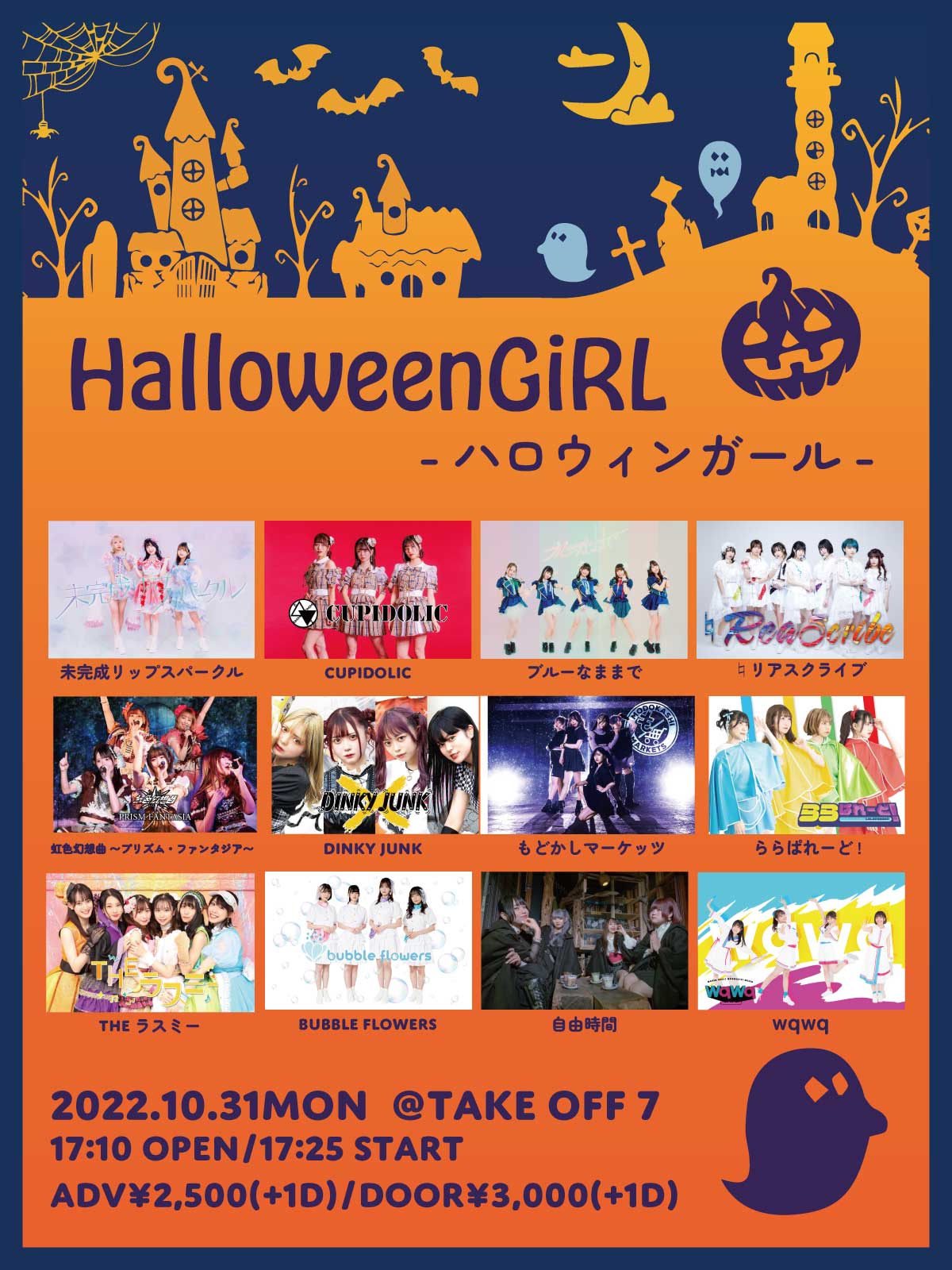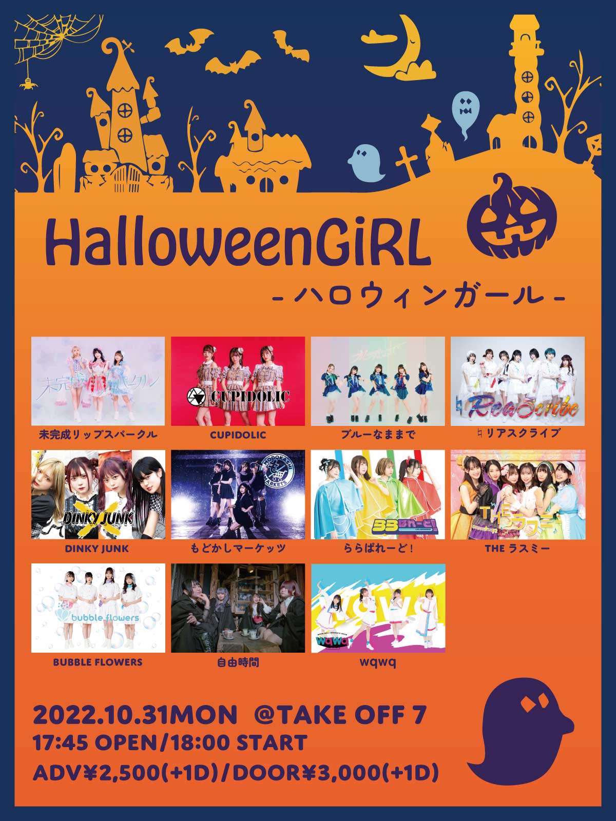 未完成リップスパークル、CUPIDOLIC、ブルーなままで、♮リアスクライブ、DINKY JUNK 、もどかしマーケッツ、ららぱれーど!、THEラスミー、bubble flowers 、自由時間、wqwq、虹色幻想曲〜プリズム・ファンタジア、and more…