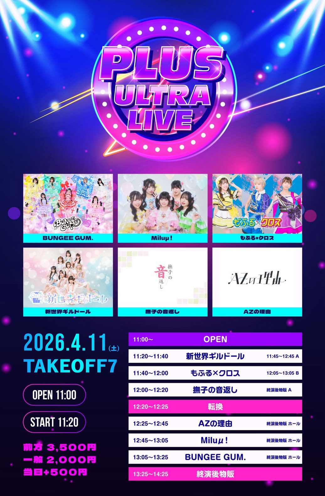前方 3,500円/一般 2,000円/当日+500円
